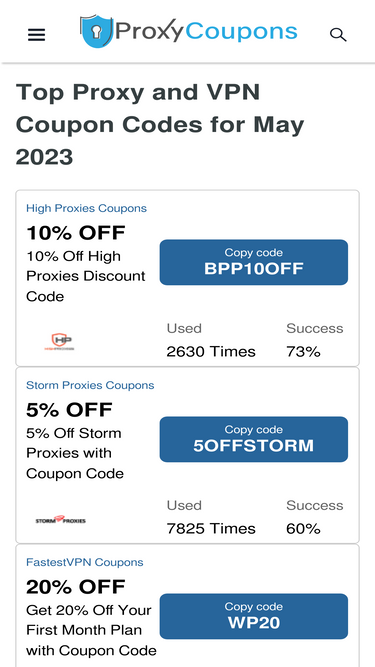 Get access to exclusive coupons and promo codes on proxies and VPNs at ProxyCoupons.com. Save up to 50% on your purchase of shared, dedicated, datacenter, and rotating proxies. Take advantage of a 50% discount on shared and dedicated VPN providers. Find the latest coupons and promo codes on proxies and VPNs at ProxyCoupons.com