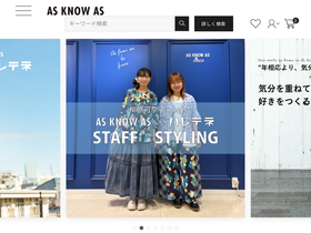 100%AS KNOW ASオンラインショップは、体型や身長に合わせた大きいサイズもご用意しあなたに合う服をご提案!今なら登録後すぐに使えるクーポンプレゼント!