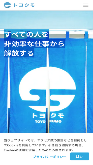 89%Toyokumo, Inc., with a mission to "Freeing all people from inefficient work," provides Safety Confirmation Service II, kintone integration services, and Toyokumo Scheduler.