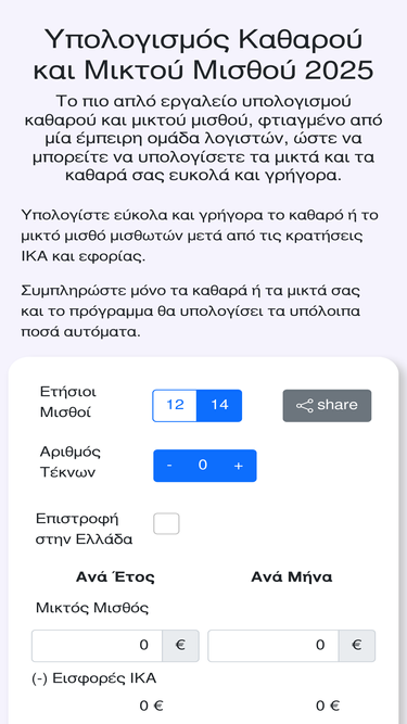 58%υπολογίστε εύκολα και γρήγορα το καθαρό ή το μικτό μισθό μισθωτών μετά από τις κρατήσεις ικα και εφορίας.