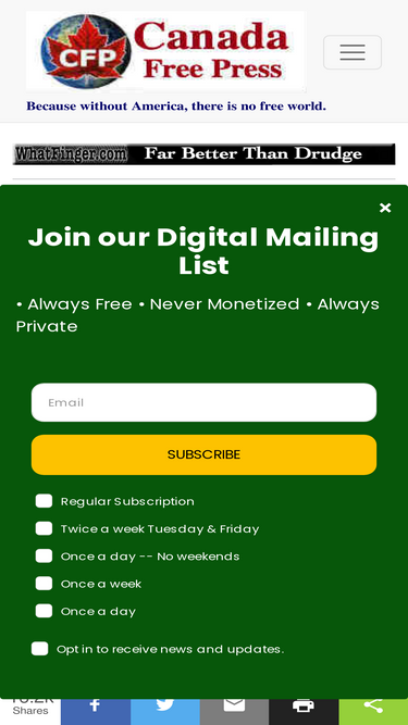 91%Canada Free Press is an independent investigative news site, which like all conservative/Christian news providers is fighting social media censorship to stay online