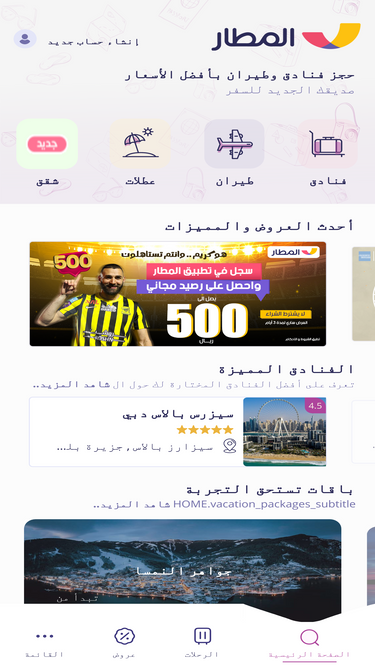 100%إحجز أفضل الرحلات والفنادق بافضل الاسعار داخل السعودية وخارجها مع موقع وتطبيق المطار.
