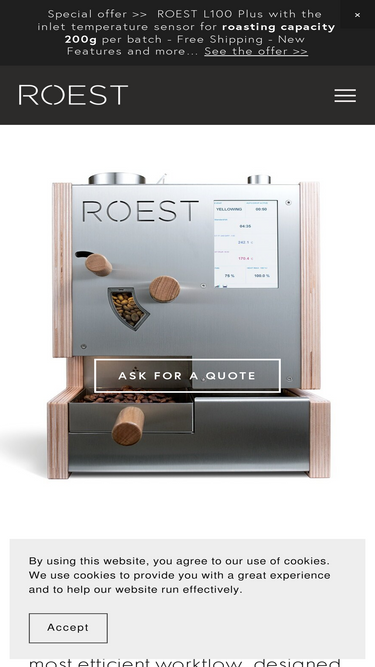 92%Frequently asked questions about the ROEST sample roaster: Coffee roaster price. Customer support. Technical details. Warranty terms. Online demonstration. Import tax.
