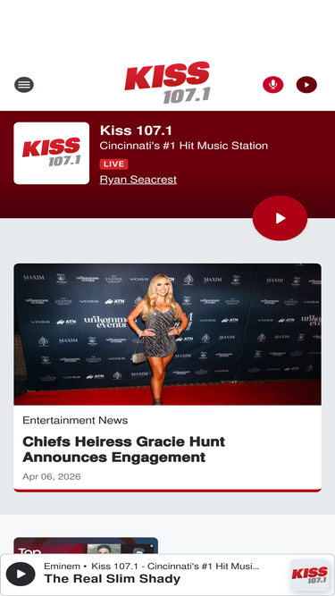 82%Be the first to get all the important details on Kiss 107.1 - Cincinnati's #1 Hit Music Station only on Kiss 107.1
