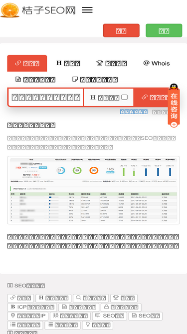 76%桔子seo为站长提供外链查询,批量查反链、老域名挖掘、网站建站历史快照记录、网站标题和内容关键字主题密度检测等的seo站长工具网