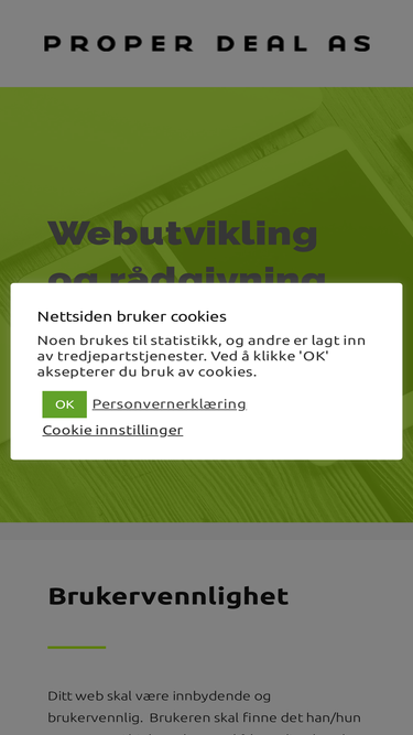 100%Vi er Proper Deal AS. Vi er opptatt av å beskytte og respektere dine data og din rett til personvern. Du kan kontakte oss på post@properdeal.no.