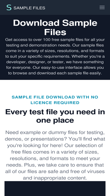 96%download free sample files to use in your project. a variety of test files to use in your demos or use as examples with no license required
