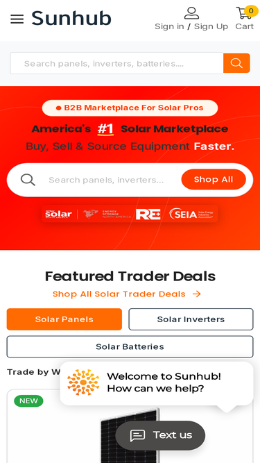 74%Buy and Sell Solar Panels, Inverters, Batteries, Solar Lights, Components, or BOS parts on Sunhub, the Solar E-Commerce Marketplace. Free Shipping.