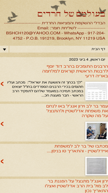95%הבדלי ההשקפות והמציאות החרדית -------------------------------------------- לשליחת חומר: Email: BSHCH120@YAHOO.COM - WhatsApp - 917-204-4752 - P.O.B. 191219, Brooklyn, NY 11219 USA