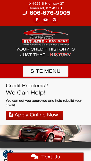 92%Find your next car at AutoLand in Somerset, KY. Buy here pay here financing with low down payments and a 12-month/12,000-mile warranty. Get approved today!