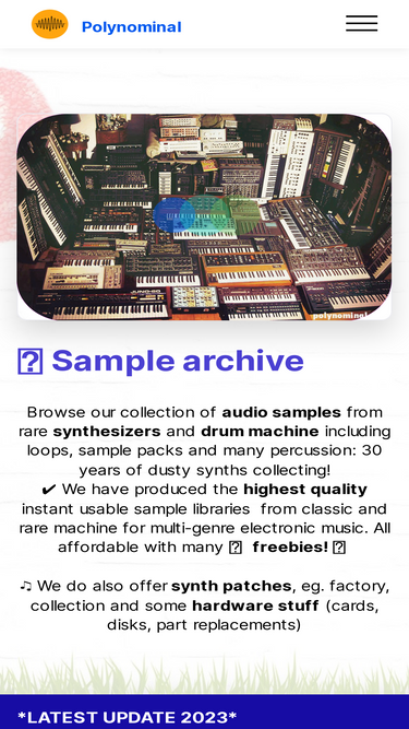 86%browse our 30-years historic collection of synth samples, synth loops, synthesiser sample packs, synth melodies, analogue synth and drum machine. all free audio samples are available to download 100% royalty free for use in your music production or sound design project.