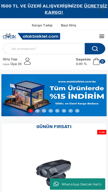 Bisiklet Aksesuar, Bisiklet Yedek Parça, Bisiklet Giyim, Bisiklet Bakım/Onarım, Bisiklet Antrenman/Trainer ve Bisiklet Taşıyıcı kategorilerinde toplam 2000 'den fazla ürün çeşidi www.atakbisiklet.com 'da..