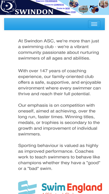 swindon asc cater for all swimmers. we have a strong ‘learn to swim’ programme and compete at local, county and regional events.