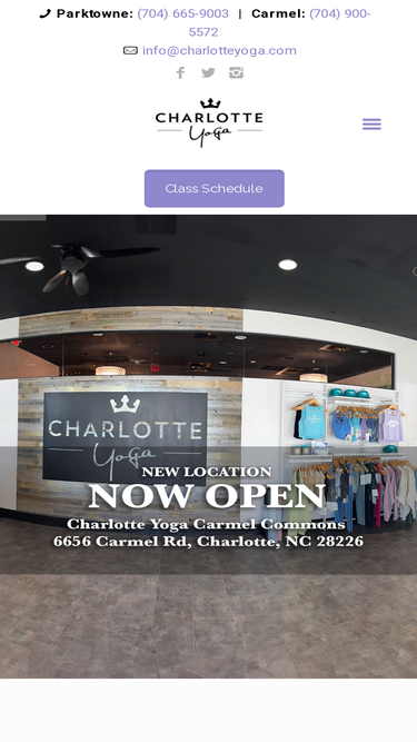 89%Charlotte - Offers class schedule, rates, facility information, in-studio store, and massage services.