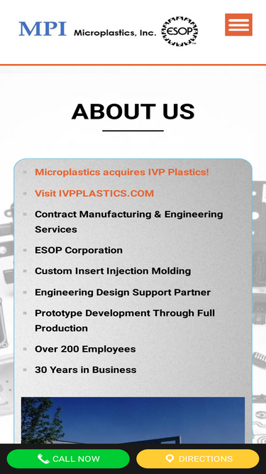 Contract Manufacturing & Engineering Services ESOP Corporation Custom Insert Injection Molding Engineering Design Support Partner Prototype Development Through Full Production Over 200 Employees 30 Years in Business Click to enlarge
