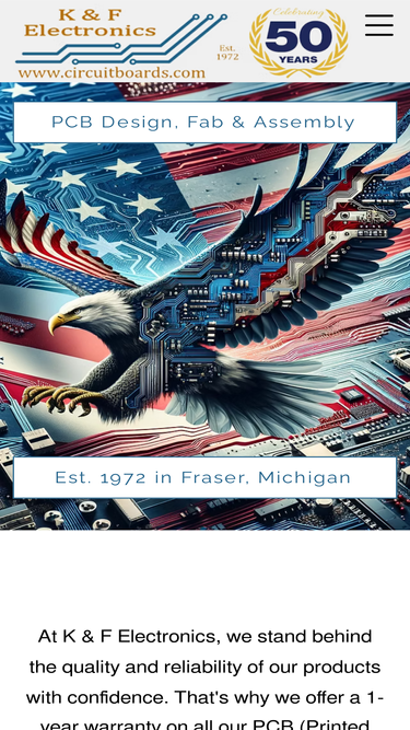 85%Manufacturing and assembling printed circuit boards in Fraser Michigan since 1972. K&F Electronics provides quality today for tomorrow's technology. 24 Hour Delivery.