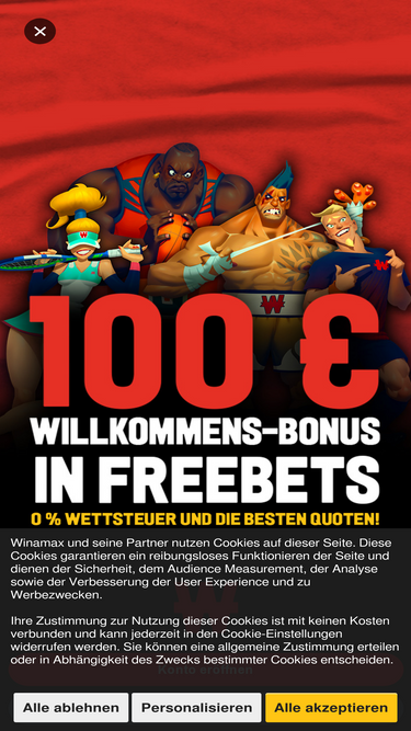 78%Sportwetten mit den besten Quoten auf Winamax. Wir verdoppeln eure erste Einzahlung bis 100 €!