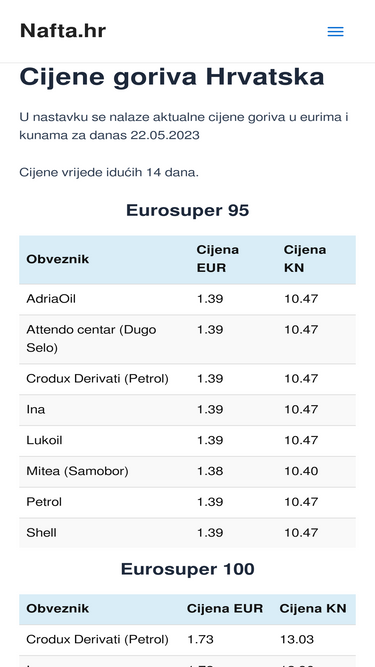 92%Nafta.hr je prepoznata kao pouzdan izvor informacija o cijenama goriva, a neki od naših podataka i analiza su objavljeni u vodećim regionalnim medijima. U nastavku pogledajte neke od njih.
