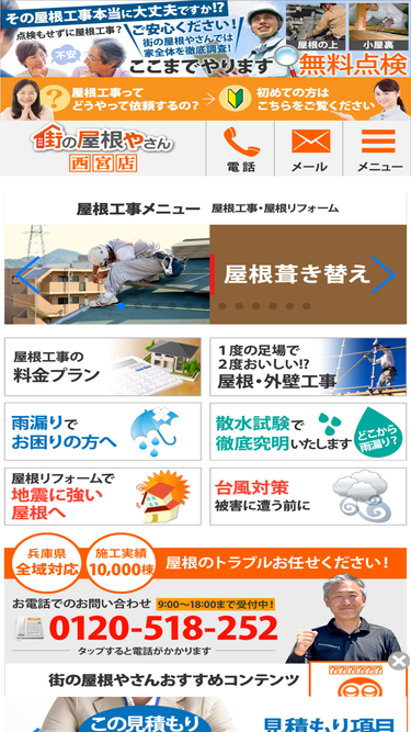 96%西宮市、神戸市、明石市で屋根工事、屋根葺き替え、屋根カバー工法、屋根塗装、棟板金工事、漆喰工事、雨漏り防水工事などの屋根リフォームをお考えなら街の屋根やさん西宮店にお任せください。豊富な施工実績が貴方のお住まいをお守りします。