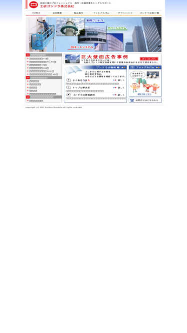 100%工研ゴンドラ株式会社のホームページです。仮設工事のプロフェッショナル企業として、業務用ゴンドラ、足場、高所作業車など、高所仮設作業をトータルサポートいたします。