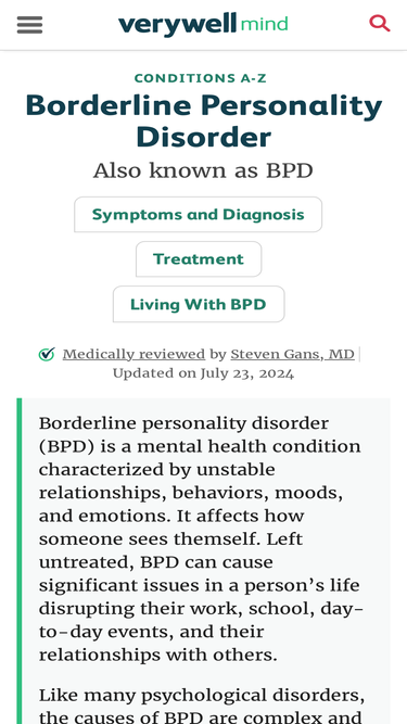 94%borderline personality disorder (bpd) is a very complex mental illness. it effects the lives of...