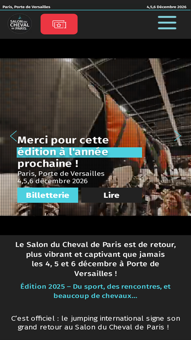100%Bienvenue sur le site officiel du salon du cheval de Paris qui aura lieu le 12,13,14 décembre 2025 à la Porte de Versailles. Découvrez le programme et accédez à la billetterie.