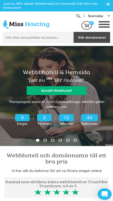 82%Miss Hosting är Sveriges nya enkla Webbhotell. Vi har den absolut bästa supporten och tjänsterna till det billigaste priset. Från 9 kr per månad. 24/7 support