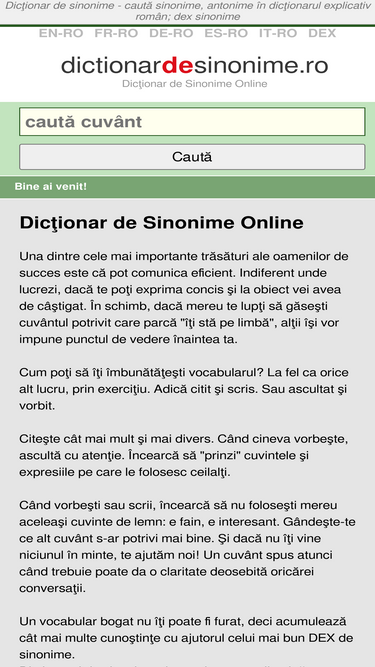78%consultare dictionare pentru limba romana: dex - dictionar explicativ, sinonime, antonime, ortografic, arhaisme, regionalisme, etimologic, neologisme. cautarea se face dupa forma baza sau forma flexionara, cu sau fara diacritice