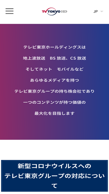 テレビ東京ホールディングスのウェブサイト。会社情報や株主・投資家向け情報、CSRへの取り組み、グループ採用情報などをご紹介しています。
