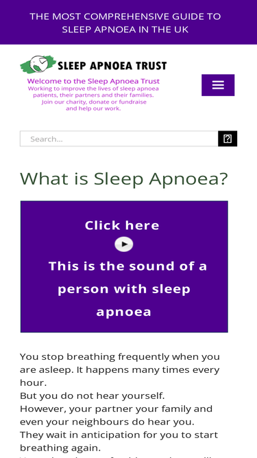 100%The Sleep Apnœa Trust is a UK Charity run for patients by patients which exists to improve the lives of sleep apnoea sufferers, their partners and their families.