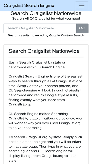 94%Craigslist Search Engine is the easiest ways to search through all of Craigslist at one time. Simply enter your search phrase, and CL Searchengine will search through Craigslist nationwide for you.