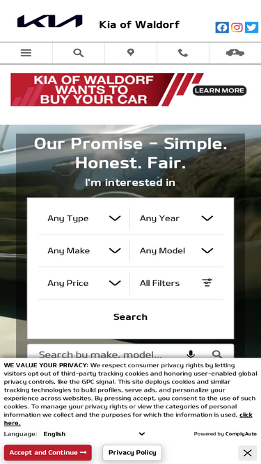 97%Find the Kia of your dreams at Bayside Kia of Waldorf. Proudly serving Clinton, Fort Washington, Saint Charles, Camp Springs & La Plata.