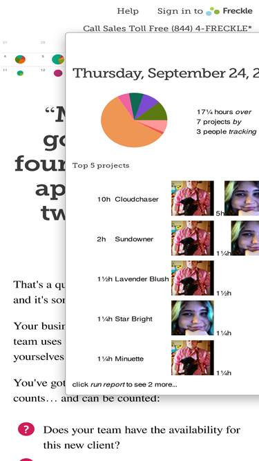 98%Are you guilty of guesstimating? A free course from Freckle You quit your job because you were a good developer or designer, and you’re finding out (the hard way) that you’ve got a lot on your plate... You need to market. You need to write proposals. You need to bill current clients. You need to find future clients. Oh, and you need to get back to the reason you need to track time in the first place: your work! Get your free worksheets and the 5-part email series and you’ll learn the most valuable things we’ve discovered while building Freckle. …