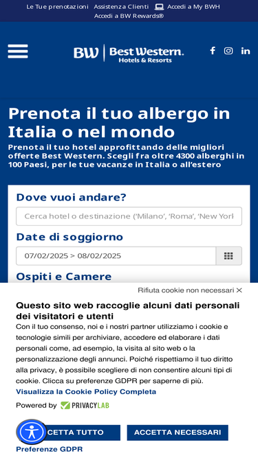 60%Prenota il tuo hotel approfittando delle migliori offerte Best Western. Scegli fra oltre 4300 alberghi in 100 Paesi, per le tue vacanze in Italia o all'estero.