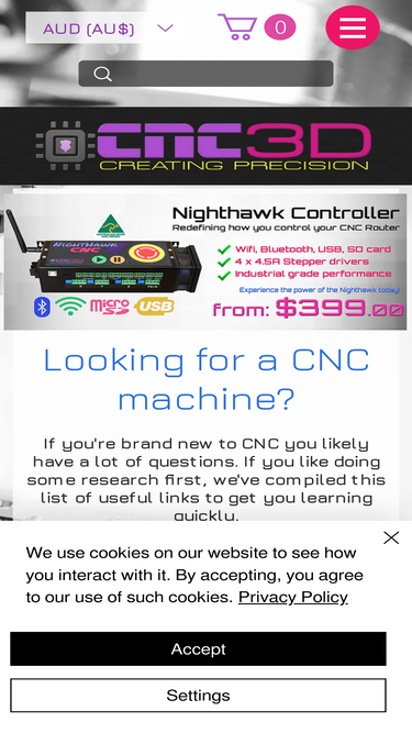 100%Affordable and accurate CNC routers and laser engravers made right here in Australia. Catering for both hobby users and Business. Experience precision with CNC3D's Australian-made, fully-assembled CNC routers and laser engravers. High quality, affordable and turn key solutions for all your engraving and routing needs.