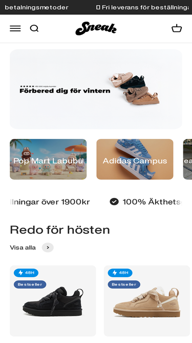 100%Shoppa de trendigaste sneakersen tryggt via Sneak. I vårt största urval i Sverige hittar du till exempel Nike Dunk, Adidas Campus, Air Jordan 1, Air Jordan 4, Air Force 1, New Balance, Yeezy, UGG och många fler.