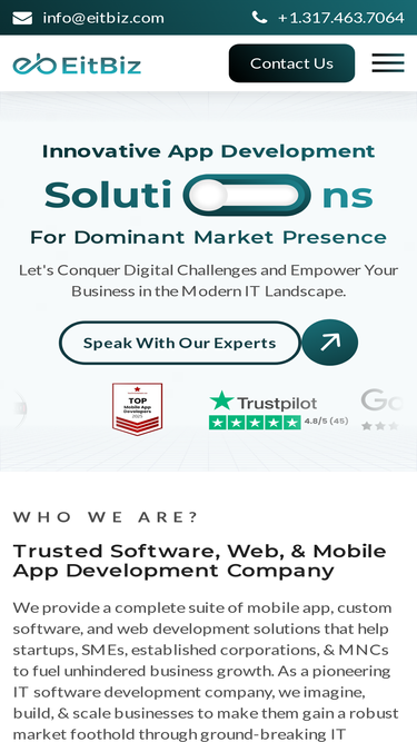 93%Get answers to frequently asked questions about EitBiz's mobile, software, and web app development services, engagement models, and project workflows.