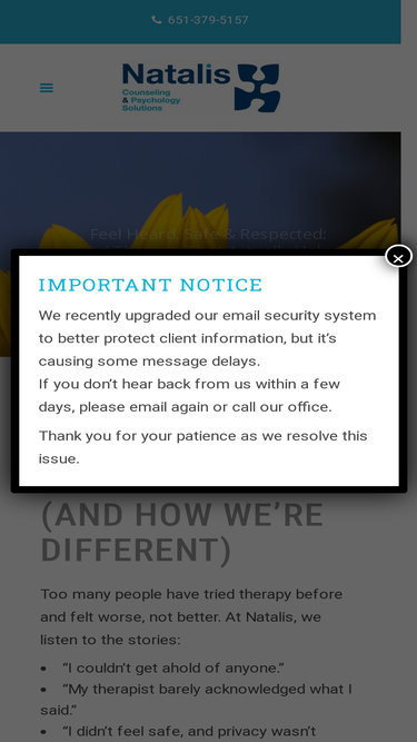 78%natalis counseling & psychology staff of psychologists, social workers, therapists, and counselors provide psychological testing, individual counseling and psychotherapy.