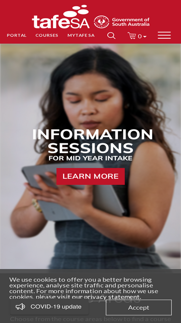 72%Learn more about studying at TAFE SA by viewing the student information system, myTAFE SA, terms and conditions.