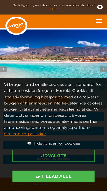 66%Billige charterrejser fra Billund Lufthavn med Primo Tours og danske guider. Rejser til Kreta, Rhodos, Alanya, Side, Porto Santo, Alcudia, Sivota og flere...