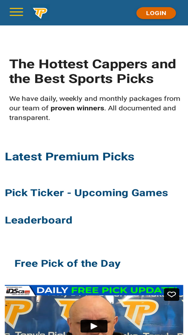 89%Get free sports picks, predictions & odds from sports expert handicappers including Tony Tellez. Get today's best bets on all sports including, football, NFL, NBA, college football, college basketball, MLB, NHL, Golf, and more. Watch video analysis by Tony himself. Buy Premium Picks for the games.