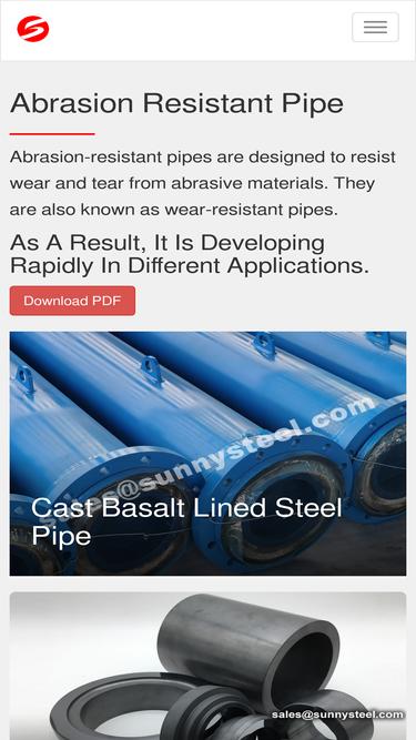 97%sunny steel is a global well-known high-quality abrasion-resistant pipes and fittings supplier, specializing in cost-effective solutions to wear problems by supplying high-tech materials such as ceramic, cast basalt and rare earth alloys.