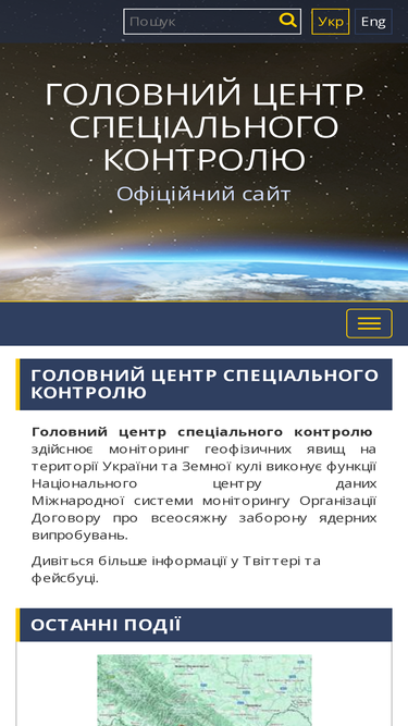 87%Офіційний сайт Головного центру спеціального контролю (ГЦСК), Національного центру даних, Національної системи сейсмічних спостережень.