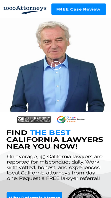 100%Free California Attorney Search, 1000Attorneys.com Is A Lawyer Referral Service Approved By The American Bar Association & Certified By The California State Bar
