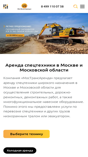 87%Компания «МосТрансАренда» готова предоставить в аренду любую дорожную и строительную технику. В нашем автопарке вы можете заказать услуги: аренда экскаватора, аренда башенного крана, аренда погрузчика, и любую другую строительную технику.