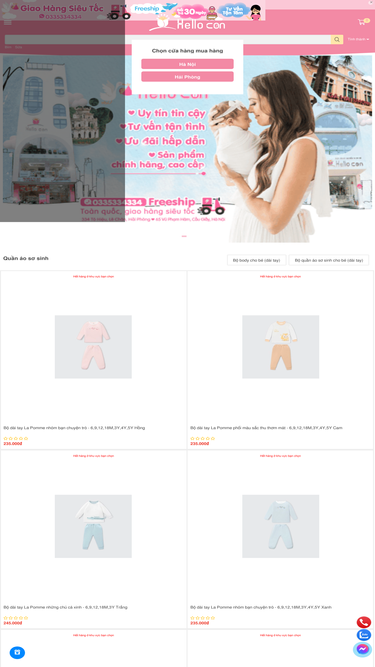 89%Hello Con hiện có hai cửa hàng Mẹ và Bé cao cấp tại Hà Nội và Hải Phòng. Trong tương lại Hello Con sẽ mở rông ra các tỉnh khác. Rất mong được Ba/Mẹ ủng hộ.