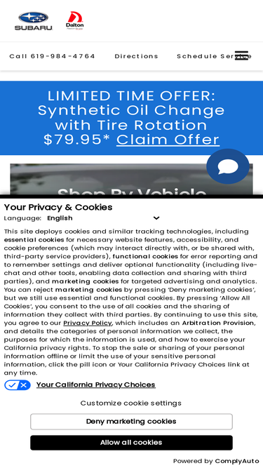 98%From new Subaru vehicles to our Subaru service center, we are here to help our local community of Subaru drivers. Visit Dalton Subaru National City today!