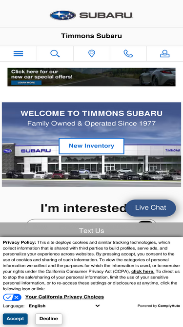 96%Shop new and used Subaru vehicles at Timmons Subaru in Long Beach, CA. Explore a wide selection of SUVs, cars, and trucks with great financing options and expert service. Visit us today!