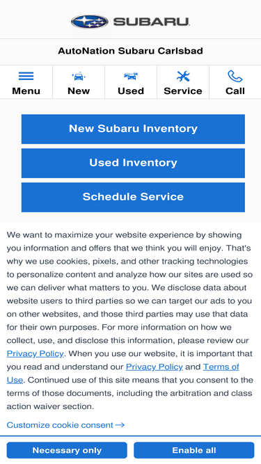 94%autonation subaru carlsbad is your local subaru dealer serving carlsbad, san diego, & temecula. shop new & used cars for sale or schedule service.