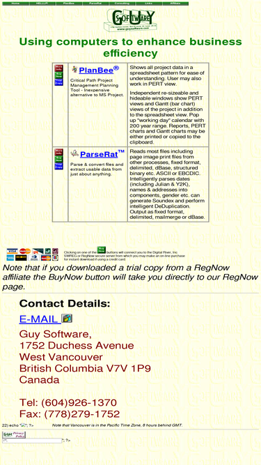 100%software to enhance business efficiency: planbee for critical path project management; helllp! to produce winhelp files; parserat for file and database parsing, conversion and data extraction.